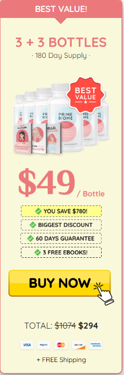At this moment you can order PrimeBiome supplement for 82% OFF + FREE Shipping. This is a Limited-Time Offer and it won’t be available for long.